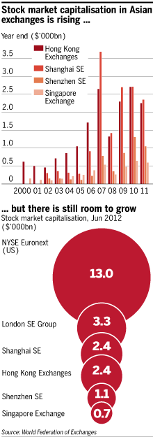 香港仍是亚洲地区能够吸引到优质公司前来上市的主要城市。近年来,普拉达(Prada)、欧舒丹(L’Occitane)和新秀丽(Samsonite)都选择在香港进行IPO,而放弃了在米兰、巴黎、伦敦、纽约或新加坡的上市机会。再加上中国内地企业赴港上市热潮的推动,2009年至2011年间,香港市场的新股发行融资规模连续三年位居全球第一。