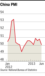 汇丰(HSBC)发表的6月采购经理指数(PMI)大幅跌至48.2的九个月低位。在50这个区分扩张与收缩的分水岭下方进一步下跌,显示中国制造业正陷入绝对收缩状态。
