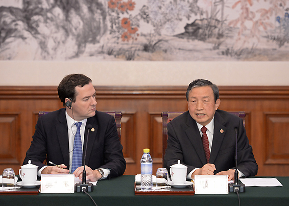 英国财相针对中资银行的举措将在今日公布。此前他与中国副总理马凯会晤(见上图),对北京方面有关伦敦监管机构使中资银行难以扩张的抱怨作出回应。