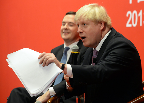 如果英国保守党的下一场领导人竞逐让中国大学生决定的话,伦敦市长鲍里斯•约翰逊(Boris Johnson,见上图,手持话筒者)将轻松完败英国财相乔治•奥斯本(George Osborne)。