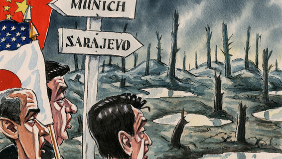 环顾当今世界,萨拉热窝事件重演的危险,看上去比慕尼黑危机重演的危险更迫在眉睫。没有哪位独裁者威胁要横行国际——巴沙尔•阿萨德(Bashar al-Assad)的野心似乎只局限于在叙利亚继续执政。但如同1914年前不断崛起的德国与周边邻国发生对抗一样,如今正在崛起的中国也与多个邻国——特别是日本——发生了争端。