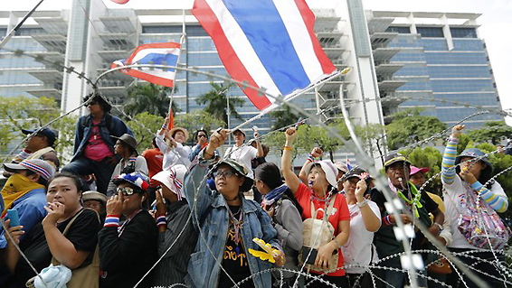 但现在,冲突双方比以往更加顽固。如要防止引发暴力、产生可怖后果,一方或双方必须有所退让。数月以来,泰国爆发过多起针对英拉•西那瓦(Yingluck Shinawatra)政府的街头抗议——英拉是流亡前总理他信•西那瓦(Thaksin Shinawatra)的妹妹。抗议者说,现政府不过是他信干政的幌子。他信在2006年的政变中遭罢免,之后被判滥用职权从事腐败活动。(他信的律师称审判有政治动机。)政府试图通过法案赦免他信,这一自利举动引发抗议。