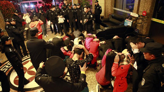 在广东省警方突击清查了涉嫌提供色情服务的数千娱乐场所一周后,中国各地发起了一场打击卖淫嫖娼、赌博和贩毒的行动。