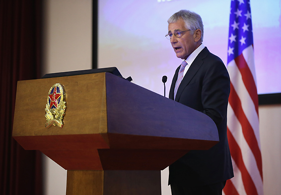 美国国防部长查克•哈格尔(Chuck Hagel,见上图)访问北京期间,美国和中国围绕中国在海洋权益主张上日趋强硬的姿态针锋相对。