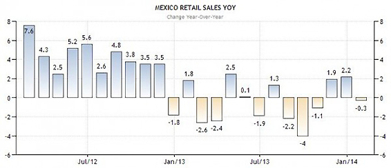 这也提醒人们注意,墨西哥仍在很大程度上受美国经济影响。当美国经济复苏呈现出高歌猛进的态势时,墨西哥的前景也一片光明。既然美国的经济增长还不稳定,墨西哥的前景也显得较为暗淡。无论结果如何,不久前投资者对墨西哥模糊抱有的乐观情绪已变成一场信心危机。而且墨西哥资产依然昂贵。