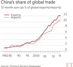 十多年来,中国一直被外界指责输出通缩。2002年,时任日本财务省(MoF)官员、现任日本央行(BoJ)行长的黑田东彦(Haruhiko Kuroda)在英国《金融时报》上警告称,中国加入世贸组织(WTO)将为世界经济添加一股“强大的通缩力量”。